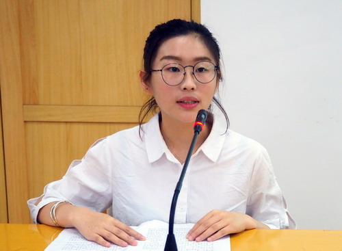 发展对象培训班代表政法学院黄慧倩同学在开班仪式上作了“不忘初心,牢记使命,争做合格新青年”的表态发言。
