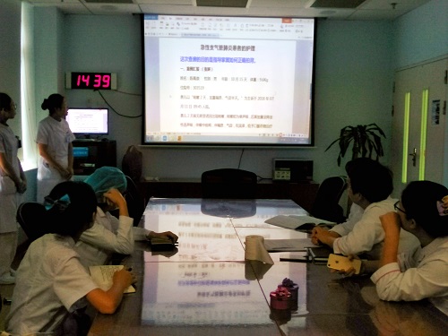 此次教学查房的主题是肺炎病人的护理。整个过程严格按照护理教学查房规范程序进行,首先是告知查房目的,接着是病史介绍,然后是床边体格检查,再就是提出护理诊断与护理措施,最后进行的是健康教育。各个环节都紧密相扣,整个查房过程轻松愉快,有条不紊。查房结束后,马梦玲老师对此次教学查房作了点评,并与带教老师一起耐心地回答实习同学查房中遇到的问题。