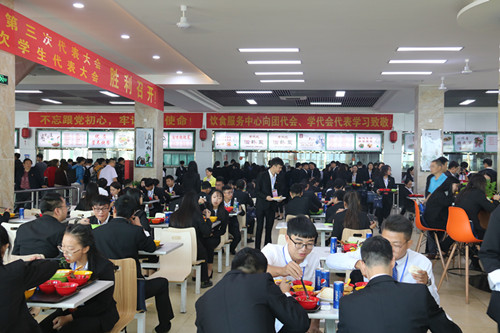后勤管理处饮食服务中心全体员工用心服务,努力构建安全、优质、高效的饮食保障体系,为全校师生提供洁净、卫生、安全、优质的餐饮服务,顺利完成了此次大会餐饮服务保障任务,得到了与会代表的一致好评。