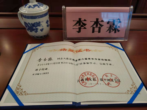 11月2日至7日,由中共江西省委宣传部、江西省文联主办,滕王阁文学院承办,《星火》杂志、中共兴国县委宣传部协办的江西省第六届青年作家改稿班在江西省兴国县举行。来自全省各地的50名青年作家参加培训。文传学院A1623班的李杏霖同学作为我校唯一一位入选的成员参加了这次活动。