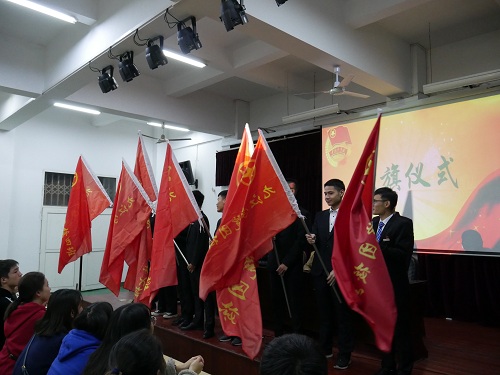 团委副书记冯廷婷同学宣读了《九江学院团校管理规定》及本期团教工作计划,对团校学员的行为规范提出了要求。学工部部长孟祥昕宣读了《第五期团校班委任命书》,明确了各班级班委会成员及职责。随后,团校学员代表赵荣臻同学发言,表达了同学们刻苦学习、努力实践,争取早日成为中国特色社会主义事业的合格建设者和可靠接班人的决心。校团委领导老师为团校各班授旗。