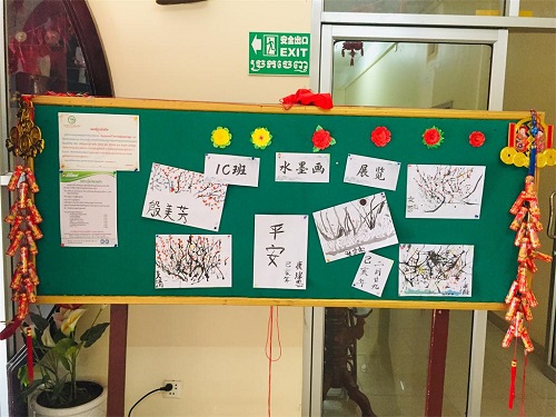 隔壁的另一个初级C班搞起了艺术创作——泼墨梅花,潘怡君老师示范之后,学生们都能够独立完成自己的作品,各种天马行空的创作跃然纸上,老师们不禁为他们竖起了大拇指,学生们一片欢腾。最后,他们班还举办了一场小型展览会呢!