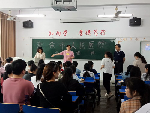 九院代有才人出,勇闯面试独木桥。为推进2019届毕业生就业工作再上新台阶,进一步提高2019届毕业生就业率,5月15日下午13点,护理学院携手新余市人民医院在思贤楼205、206教室开展专场招聘会。此次招聘会深受医院和护理学院重视,学生科科长范玲玲和辅导员袁青兰老师在现场组织和指导,共有62名准毕业生参加招聘。