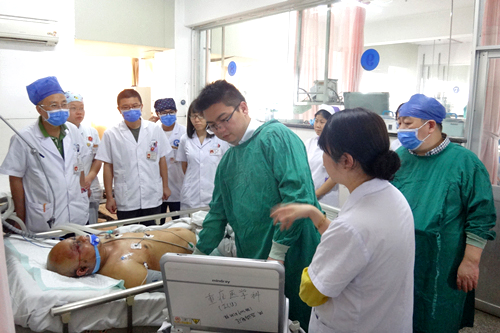 专题会结束后,南大一附院专家团队一行来到临床医学院/附属医院重症医学科病区进行现场指导培训,演示和讲解了文丘里阀的使用方法、注意事项,手把手教授学员正确利用超声寻找困难血管,对重症患者做到早期发现、早期治疗,并作了超声运用流程规范化培训。该院重症医学科方珍护士长还就ICU护理团队的建设和新技术的开展等内容,与南大一附院江榕护士长进行了深入细致的交流。