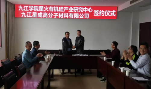 会谈期间,双方就有机硅下游产品研发、人才培养及资源共享服务等方面达成了全面合作共识,并就聘请我校潘家炎博士为九江星成高分子材料有限公司技术顾问及承担的“裂解硅油乳液的制备与应用”合作项目举行签约仪式。
