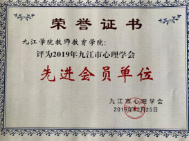 近日,在九江市心理学会2019年度工作表彰中,教师教育学院继往年再度被评为学会工作“先进会员单位”,学院黄金生老师同时被评为学会“先进个人”。