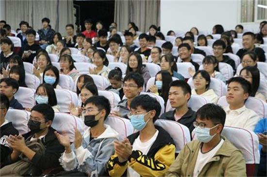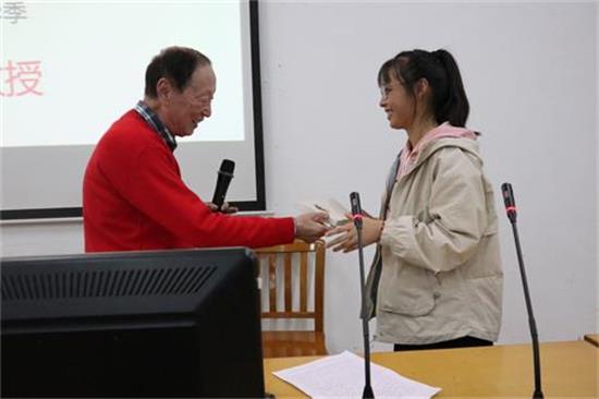 在师生互动环节,陈忠教授结合自身丰富的阅历,为同学们解疑答惑,并赠送了书籍。陈忠教授向同学们推荐了赵鑫珊的《我是北大留级生》、张爱玲的《北大回忆录》和俞敏洪的《在痛苦的世界中尽力而为》三本书。并结合这三位书作者的故事及自身的一些经历,告诉同学们:“作为一个大学生,应该要有信念,有理想,对精神层面要有更高的追求;在大学,我们要有行动,要有爱心,在校学有所成,更要有大爱。”