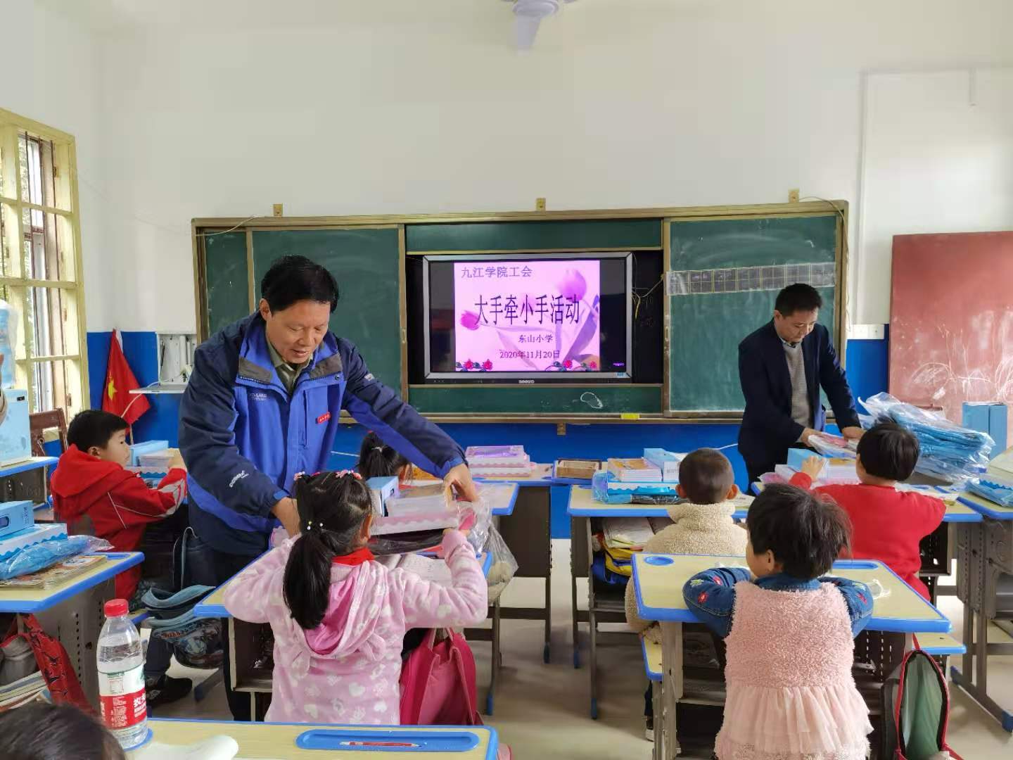 11月20日上午,校工会组织人员前往我校扶贫点武宁县官莲乡东山村小学,为该校学生送去了充满温暖的“爱心书包”,书包里有各种文具、保温杯、国学书籍等学习用品。