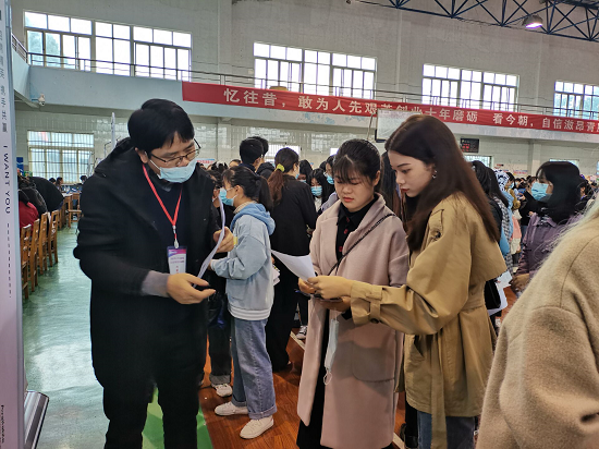 上午九点,招聘会开始。校领导现场了解了招聘会的相关情况,走访了与九江学院有稳定合作关系的用人单位,询问了疫情对外贸行业和教育培训行业的冲击与对策、招聘岗位、招聘职位、工资待遇等情况,并就如何加强校企合作、促进学科与教学改革进行了深入交流。