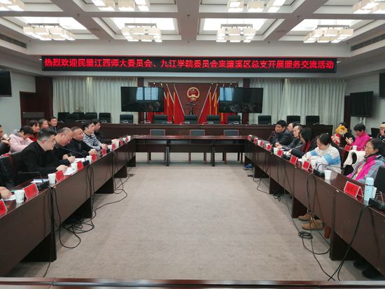12月6日,民盟江西师范大学委员会、民盟九江学院委员会和民盟濂溪区总支在濂溪区政府大楼2号会议室召开座谈会,开展盟务交流。民盟江西师范大学委员会主委卢宇荣,副主委吴珂,委员洪敏、饶曦、胡博、龙祥凤,民盟九江学院委员会主委李德恩,副主委吴中伟、刘泽良,委员胡华南、何春根,民盟濂溪区总支副主委吴胜,支委吴邦国、李健,监督员桑峰,教育委员李敏、刘群等来自江西师大、九江学院、濂溪区的四十五位盟员参加了本次座谈会。吴中伟受九江市政协副主席、民盟九江市委会严平主委委托,代表九江民盟对卢主委一行莅临九江开展盟务交流活动表示热烈欢迎并主持会议。