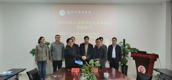 4月22日下午,文传学院在文友楼举办了创新创业人才协同培养委托项目签约仪式,该院与九江市九月文化传媒有限公司签订了《产学研合作协议书》和《创新创业人才协同培养委托项目协议书》。副校长陈春生出席签约仪式并讲话。九江市九月文化传媒有限公司董事长甘仰斌,校创新创业学院负责人,该学院党政领导、教研科、思政科负责人及部分教师代表参加签约仪式。