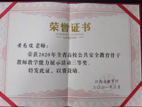 4月22日-23日,在宜春召开的2021年江西省学校安全保卫工作学会年会上,我校保卫处处长余朝阳当选为新一届江西省学校安全保卫工作学会副理事长,我校保卫处副处长周剑峰获评2020年度全省保卫工作先进个人、教育学院黄为俊老师获高校本科组公共安全教育骨干教师教学能力展示活动三等奖。