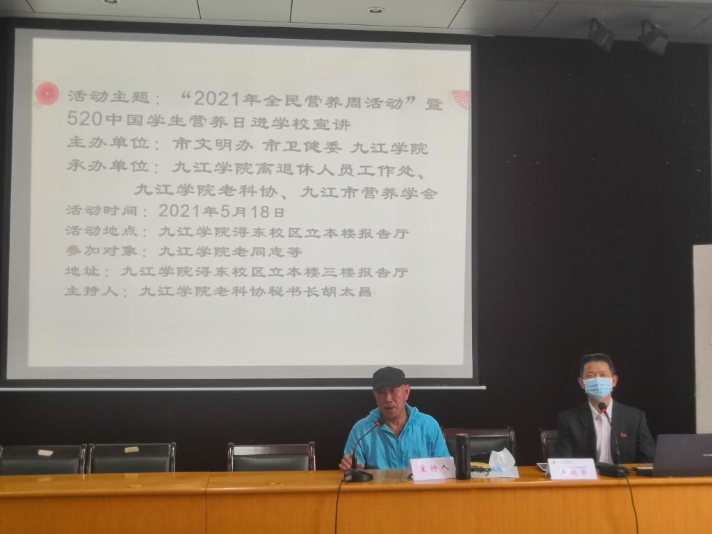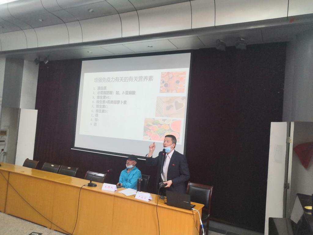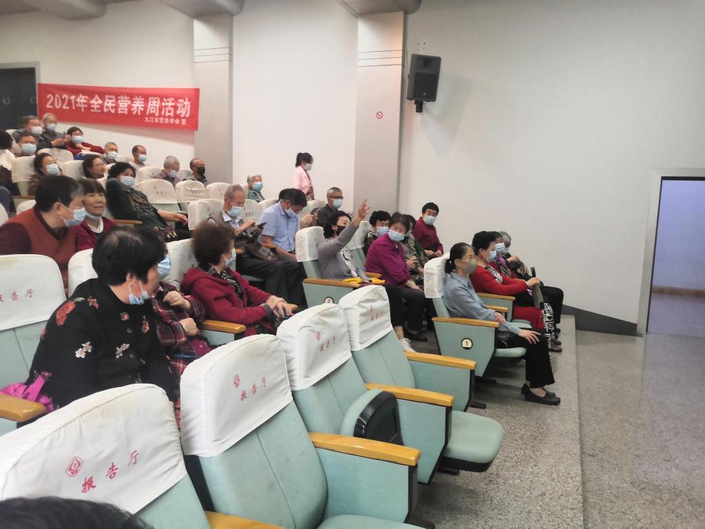 5月17日—5月23日是中国全民营养周。为了提高我校离退休老同志的营养健康意识,普及营养健康知识,有效防范各类中老年人常见疾病,我校离退休人员工作处联合九江学院老科协于5月18日下午组织开展了一场精彩的营养健康讲座——《中老年营养健康养生保健》。讲座由九江营养学会理事长、药生学院严晓华教授在浔东校区立本楼三楼报告厅讲授,来自我校四个校区的70余名老同志聆听了讲座。