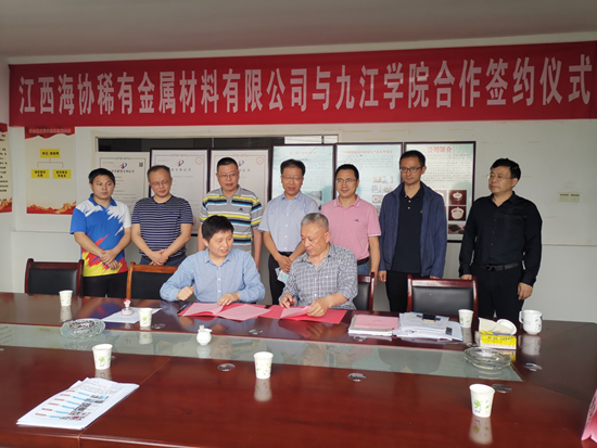 5月24日,九江市政协副主席、我校化学化工学院院长严平带队赴开发区与江西海协稀有金属材料有限公司开展产学研合作调研,双方签订了产学研合作框架协议。民盟科技支部梅龙宝教授、支部主委杨平华教授和我校化学化工学院占昌朝教授、胡庆华博士、陈修栋博士等老师参加了活动。