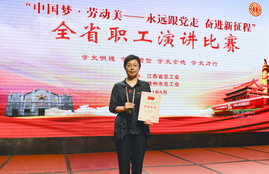 百年征程,波澜壮阔。为隆重庆祝中国共产党成立100周年,深入开展党史学习教育,充分展示我省广大职工锐意进取、朝气蓬勃,不忘初心、感恩奋进的精神风貌,5月26日,由江西省总工会主办的“中国梦·劳动美——永远跟党走 奋进新征程”全省职工演讲比赛在赣州举行。我校附属医院李华丽护士长作为九江市选派的选手参加了此次大赛,并获铜奖。