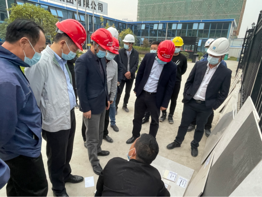 施工单位项目经理介绍了现阶段的项目进度、施工管理及现场协调等情况。杨耀防察看了已完成的主体工程,并对材料看样过程也进行了现场检查。杨耀防肯定了参建各方为项目建设所做出的努力,特别是在确保安全高效的前提下营造了良好的沟通氛围及施工环境。