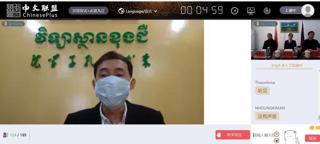 柬埔寨皇家科学院院长宋独院士(H.E. Academician SOK Touch)为本次“汉语桥”线上冬令营发来贺信,皇家科学院孔子学院柬方院长陈统崇(Taing Mengchhong)宣读了贺信。在贺信中,宋独院长表示,柬中两国正式建交已有63年,一直以来都是相互尊重、友好平等的好朋友、好伙伴。随着“一带一路”倡议的提出,“汉语热”持续升温,柬中两国合作交流进入“黄金时期”。他相信,今后柬中两国的关系将会更加亲密,柬埔寨的中文人才培养也会变得更为重要。他感谢九江学院为搭建此次交流平台所付出的辛勤努力,希望同学们珍惜机会,按时参加课程,认真完成作业,积极思考和交流,成为促进柬、中文化交流的友好使者。