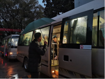 12月25日,九江初雪,考研的序幕在黎明中拉开。为最大限度保障考研学子顺利考研,为考研学子保驾护航,药生学院开展了“早送车”活动。在25日、26日考研两天,药生学院为考研学子联系车辆,确认同学人数,将同学们按时按点送往考试点。学院领导及各班班主任在清晨6点就到校,冒雨为考研同学们送车,在考研专车上细心提醒考生们要端正心态,自信从容地面对考试,叮嘱考生注意休息与饮食,保持良好的考试状态。考研专车接送,让学生不受交通困扰,免去奔波的劳累,用更好的状态去迎接考试,在寒冬早晨温暖着每一位考子的心。