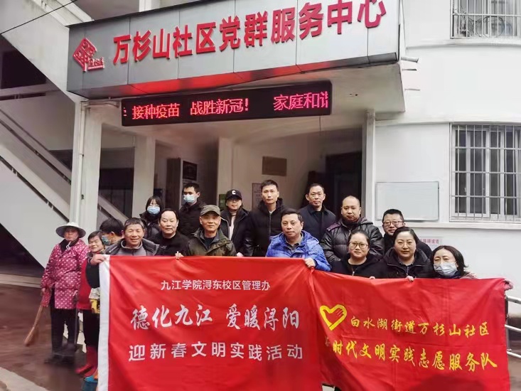 虎年新春即将来临,为营造欢乐祥和的新春氛围,不断巩固党史学习教育成果,进一步推动九江市第七届全国文明城市创建工作取得实效,浔东校区深入开展“德化九江 爱暖浔阳”迎新春文明实践系列活动。