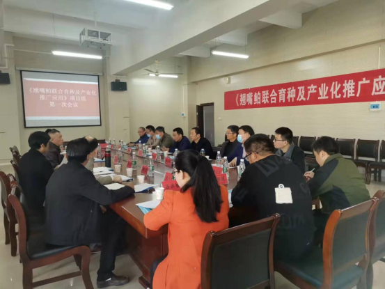 为更好地开展江西省渔业种业联合育种攻关项目《翘嘴鲌联合育种及产业化推广应用》项目研究,进一步明确项目研发目标、项目组各单位及研究人员任务要求,促进项目组研究人员相互合作交流,3月10日上午,该项目组第一次会议在我校厚德楼会议室召开。副校长严平、江西农业大学周秋白教授、南昌市农业科学院水产所所长许亮清、九江市农业科学院水产所所长曹烈、德安县翘嘴鲌良种繁殖场总经理邹火贞、九江星祥水产养殖有限公司总经理段元星、学校科研处负责人和各单位的项目组成员近20余人参加会议。