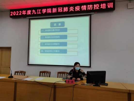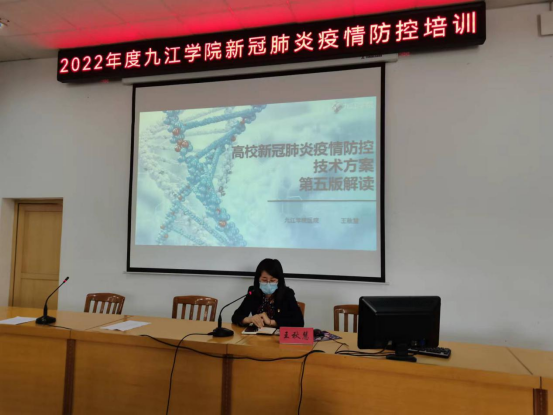 培训会上,大家一起观看了《九江学院疫情防控应急演练》视频;校医院预防科王秋慧解读了《高校新冠肺炎疫情防控技术方案(第五版)》及目前疫情防控的形势;医务部陈强盛讲解《新型冠状病毒标本采集方法与管理》;护理部李浔就《学校新冠肺炎疫情防控知识--校园消毒》;护理部徐金慧讲解并演示防护服的穿脱及操作流程,重点向大家从个人防护、科学消毒、综合防控、开学要点、风险摸排等方面对新冠肺炎疫情的形势与防控要求进行了详细讲解。
