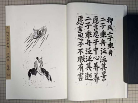 本次活动通过撷取《诗经》中饶有画意的诗作,由毕业于中央美术学院版画专业的周婷老师创作出文字和插图的样稿。之后,图书馆组织招募了十余名师生参与到雕版印刷和手工装帧的全过程,历时两个月,终于完成了该书的制作。参与此次活动的十余名师生每人获赠一本,其余由图书馆纳入了馆藏,作永久保存。