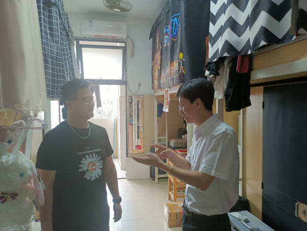 座谈会结束后,查振华和艺术学院党政领导分别走访了1栋410(视传专业A1872班)、420(服装服饰专业A1861班)、421(舞蹈学专业A1832班)学生宿舍,与学生亲切交谈,并一一询问他们大学四年的收获与感受、就业情况、毕业之后的职业规划……细致入微的关怀,让在场的每一位毕业生倍感爱意和温暖。