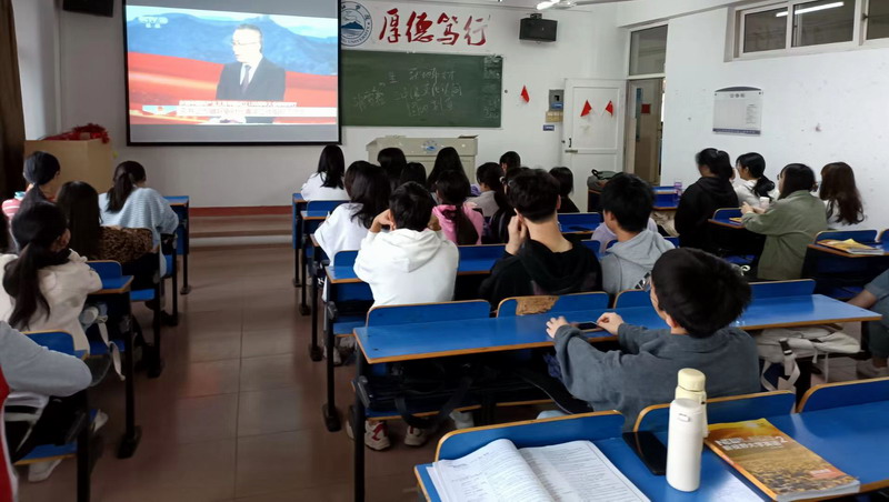 学院党委始终坚持用习近平新时代中国特色社会主义思想武装头脑,增强“四个意识”,坚定“四个自信”,坚决做到“两个维护”。坚持不懈地用党的理论创新成果武装头脑、指导实践,构建“学讲研用”四位一体理论学习模式,狠抓“知引融行”四个环节,扎实推进思想政治学习教育常态化制度化,教育引导广大党员干部旗帜鲜明讲政治,筑牢信仰之基、补足精神之钙、把稳思想之舵。组织师生学习了习近平总书记在中国共产党十九届中央纪委六次全会上的重要讲话精神、2022年全国两会精神、习近平总书记《关于坚持和完善党和国家监督体系论述摘编》内容、习近平总书记相关论述精神、习近平总书记在庆祝中国共产主义青年团成立100周年大会重要讲话精神及在中国人民大学考察时的重要讲话精神等内容。通过学习,持续深入学习贯彻习近平新时代中国特色社会主义思想,并利用 “学习强国”学习平台,让全院师生加入学习,养成“每日必学”的良好习惯,真正用党的创新理论武装头脑、指导实践、推动工作。