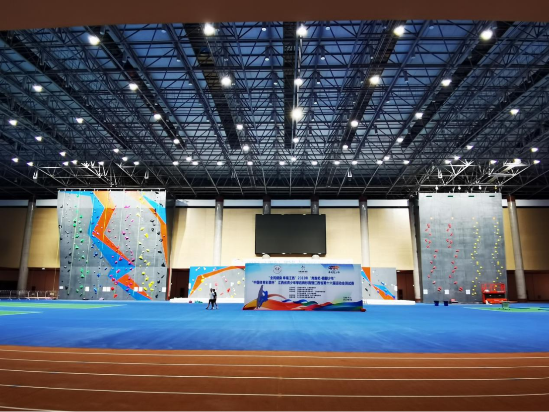 据了解,九江学院攀岩场地是首次承办攀岩比赛,该攀岩项目于2021年开始建设,目前已投入使用,场地共16000平方米,3000个座位,包括国际标准速度赛道、难度赛道、攀石赛道,总长度达60米,包含八条难度各异的难度道,两条IFSC国际标准速度道和青少年赛道,另有多重线路组合的攀石岩壁,可以满足不同水平的比赛。