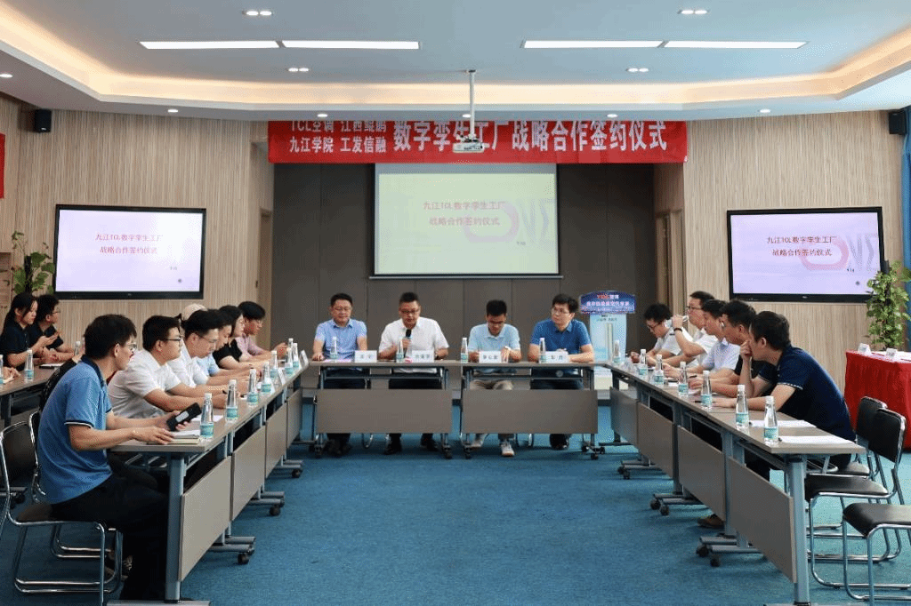 9月9日上午,在TCL空调器(九江)有限公司,我校计算机与大数据科学学院与TCL空调器(九江)有限公司、江西鲲鹏信息产业有限公司、九江工发信融科技有限公司联合签订了九江TCL数字孪生工厂战略合作协议。此次合作汇聚九江市数字经济技术、人才、研发、政策等方面的优质资源,合作方将共同努力把数字孪生工厂战略合作打造成九江产业数字化转型发展升级的样板工程,实现合作共赢。