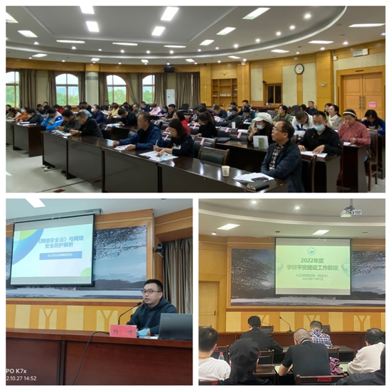 本次培训采取专家授课、实操训练、业务辅导、座谈研讨、理论测试相结合的方式进行,先后邀请九江市公安局网安支队大队长杨啸、九江市红十字会应急救护培训中心教学部主任李林以及校保卫处综治科负责人分别以“《网络安全法》与网络安全防护解析”“应急救护知识和技能”“学校平安建设工作解读”进行了专题辅导授课。