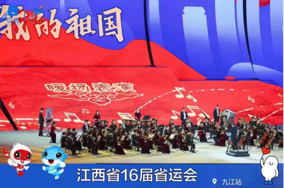 九江交响乐团演奏的交响曲《我的祖国》拉开了整场开幕式的帷幕。本节目由艺术学院副院长、九江交响乐团团长欧阳时来执棒指挥,叶树雯、韩韬、陈凡、梁婧、蔡园园、纪宇媛等教师及音乐学专业学生80人共同演奏完成。