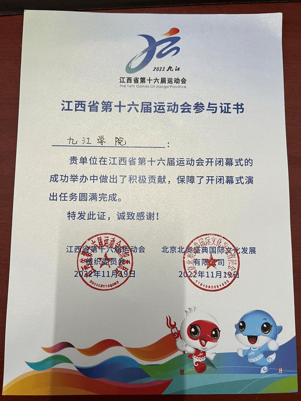 九江学院荣登江西省第十六届运动会志愿者贡献奖榜单