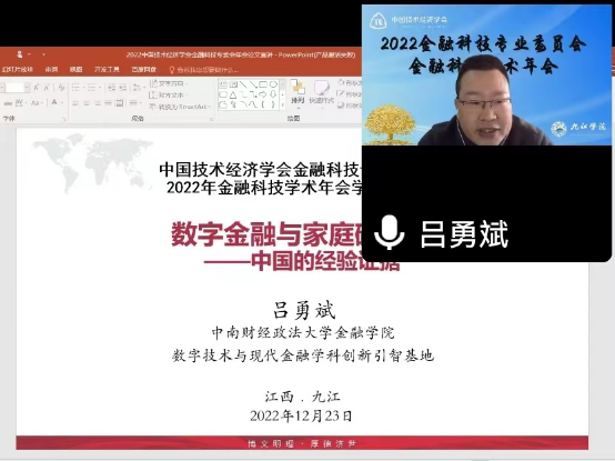 12月23日,由中国技术经济学会金融科技专业委员会主办,我校经济学院承办的中国技术经济学会金融科技专业委员会2022年学术年会在我校顺利召开。会议采取线上线下相结合的方式进行。来自各金融机构、企业、高等院校和科研院所的专家学者线上参会,我校师生代表参加线下会议。我校副校长、中国技术经济学会金融科技专委会副理事长王万山主持会议。副校长陈春生代表九江学院致欢迎辞。