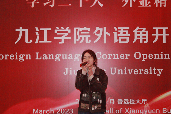 3月1日晚,改造一新的香远楼中庭中西合璧,气氛十分热烈,由校团委和外国语学院联合主办,校学生社团联合会、英语协会承办的“学习二十大 外显精气神”九江学院外语角开幕仪式在香远楼大厅隆重举行。