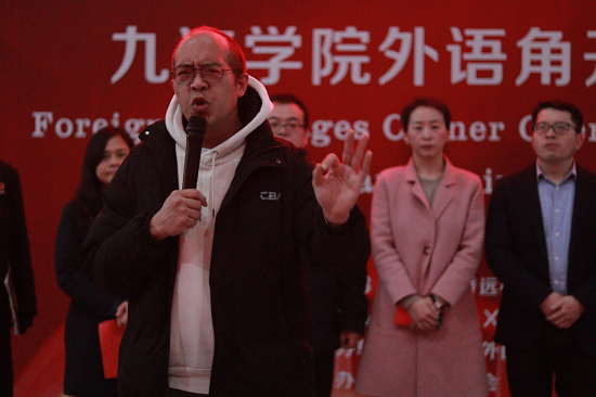 在激情洋溢的英文致辞中,我校外国语学院院长周志高表示:“外语是走向全球的工具,也是传播中华文化、中国精神的利器。外国语学院师生要以‘学好外国语,做好中国人'为己任,在学习外语的同时,感受中外文化的精彩,向世界讲好中国故事。”