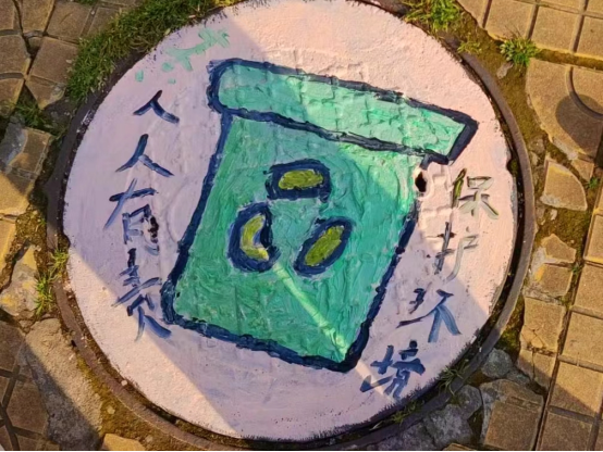 在九江学院主校区内,目前共有20多个画着创意画的井盖,分布在校园三食堂和五食堂附近,有的画着各种卡通图案,有的画着关于垃圾分类的科普知识,还有的写着温暖的标语。