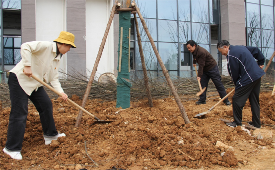 春日的紫薇园校区,处处挥洒着热火朝天的劳动场面。党员同志们来到紫薇园的绿化地,齐心协力,悉心为红榉木挥锹填土、踩实压紧,在现场专业人员的指导下,认真完成每一道工序。
