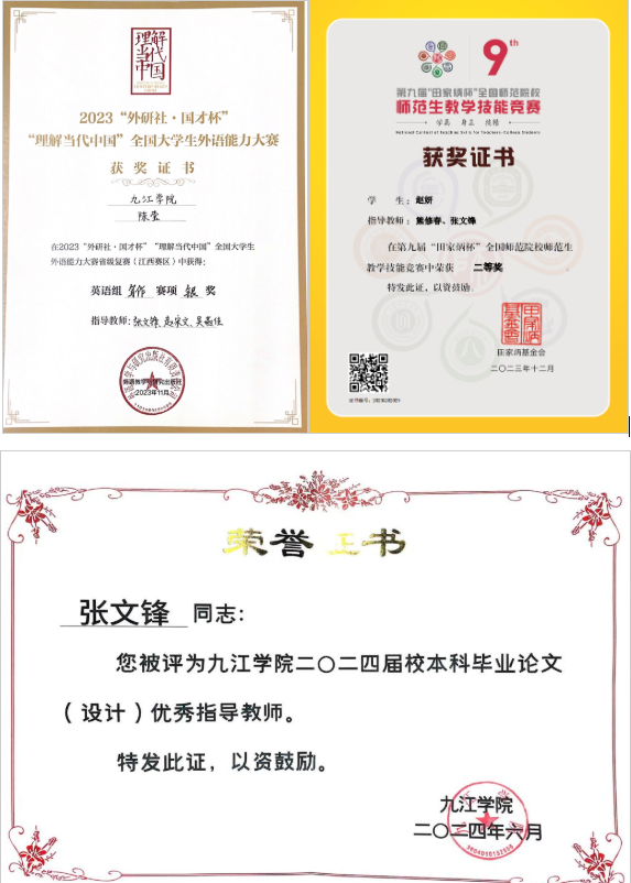 编者按:张文锋,外国语学院教师,江西省高校课程思政教学案例三等奖获得者,校教学成果奖二等奖核心成员。他扎根教学一线十六载,始终秉持“立德树人”根本任务,在专业建设、教学创新和学生培养等方面取得突出业绩,荣获多项校级以上荣誉,成为学院师生公认的“四有好老师”典范。