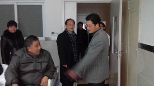 1月8号下午,基础医学院院长车向新在医学部实践教学管理科、基础医学院学生科负责人的陪同下,赴彭泽县人民医院检查首届医学定向班学生实习情况。彭泽县人民医院张院长、刘院长热情接待了车院长一行。