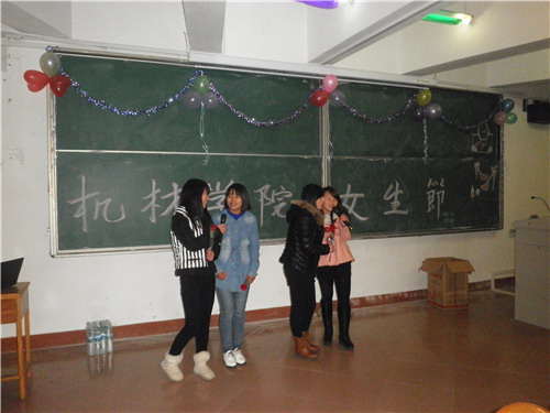 活动在一支优美舞蹈的中正式拉开帷幕。动听的音乐、变幻的步法、婀娜的舞姿使现场观众逐渐陶醉。一首首《同桌的你》、《最初的梦想》以同学们纯熟的唱功,灵动的舞姿,赢得了观众们的阵阵掌声,一度掀起了全场观众的热情。在接下来进行的游戏环节中,《抢凳子》和《买卖菜》两个游戏得到了现场观众的广泛参与,幽默精彩的游戏引来现场观众爆笑连连。会场上加入的幸运抽奖活动给女生们在感受着节日气氛的同时,也感受着节日的祝福。最后,活动在同学们合唱的歌曲中落下了帷幕。