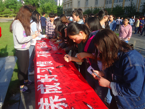 早晨,“筑梦青年”骨干培训班的同学们在班长的带领下齐聚厚德楼广场,他们首先唱起了我校校歌“白鹿洞幽,濂溪水长,五柳湖绿,爱莲池香……啊,和谐校园,知识殿堂,我们竞知向学,理想风帆从这里起航,啊,和谐校园,知识殿堂,我们厚德笃行,爱国为民创未来辉煌”,同学们激情澎湃的歌唱,唱出了“恰同学少年,风华正茂”的情怀。随后,在团学联组织部同学的带领下,他们向全院学生发起了“养成好习惯,不做‘低头族’”的倡议并进行了签名活动。