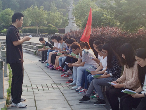 一是开展晨读晨跑活动。一日之计在于晨。5月22日早晨,会计学院大骨干培训班进行了晨跑晨读活动。在晨跑热身完后,学员们在莲池畔坐下,拿出随身携带的《国学经典诵读册》,开始诵读诗词文章。从气势磅礴的《岳阳楼记》,到直抒胸臆的《滕王阁序》;从朗朗上口的《弟子规》,到“醉翁之意不在酒”的《醉翁亭记》。同学们声情并茂,将细腻的情感与诗词融合在一起,身临其境地在朗诵中体会着文人所表达的思想感情。