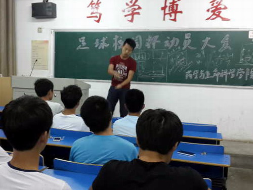 5月27日晚,药学与生命科学学院足球队在思贤楼307教室举行了“校园杯”足球赛动员会,全体足球队队员参于本次动员大会,学院团委书记徐常龙出席本次动员大会。