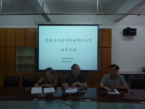 车向新院长在讲话中指出,社会评价工作是一个新生事物,是在组织评价之外由社会各界对学校的党风廉政建设进行科学评价,是省委、省政府为了增强党风廉政建设责任制考核的群众参与度和考核结果公信度,而引入的一种评价机制。开展社会评价工作,能够真实反应学校在省市领导、教职员工心目中的形象,有利于全面检验学校各项工作。全院师生要深化认识,高度重视,全面落实,精心部署,严格按照会议要求,全面、有序推进党风廉政建设社会评价工作的开展,确保党风廉政建设落到实处。同时,车院长要求学院办公室充分利用好学院网站、学院微信群和学院教职工和各班级QQ群等信息平台,做好宣传引导工作。