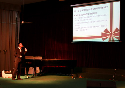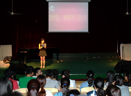 6月11日晚,艺术学院在文友楼报告厅举办新生辅导员助理培训活动,团学会主要干部及100名选拔出的新生辅导员助理共同参加。