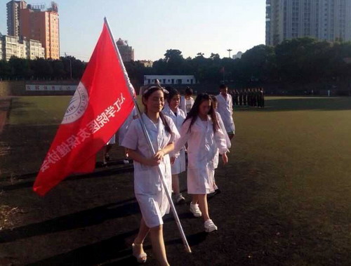 9月9日,为帮助新生更好地适应军训生活,基础医学院医友保健协会组建“医保队”志愿者队伍,于浔东校区田径场开展“迎接新生,携手军训”校园活动。