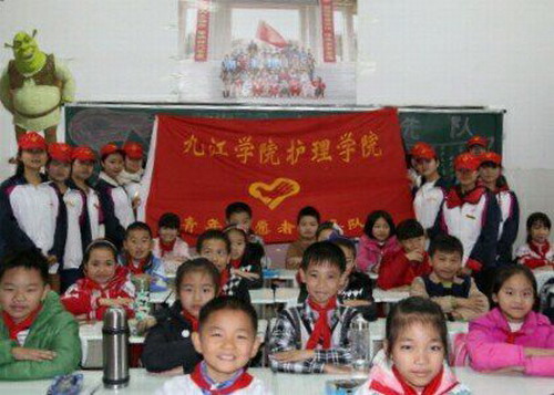 为纪念反法西斯胜利70周年,弘扬爱国主义精神,加强爱国主义教育,11月13日,护理学院青年志愿者服务队来到九江市新星小学,开展了"弘扬爱国主义,肩负时代使命"的主题活动。