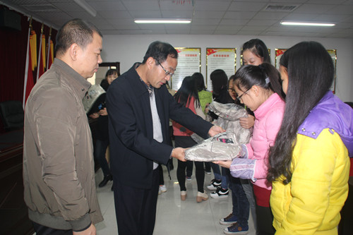 发放仪式上,高书记说,这次活动体现了社会、学校对我们在校大学生的关爱,同学们要有一颗感恩的心去回报社会对我们的关爱,以中华民族传统美德中的“滴水之恩当涌泉相报”的精神去要求自己,面对学习和生活的困难要时刻保持自信、阳光的心态,传递社会正能量。同学们纷纷表示不忘社会、学校对自己的关怀,心怀感恩,努力学习,不辜负国家、学校和学院的深情厚谊,积极传递青春正能量。随后,高书记亲手将衣物一一发放到同学们的手中。