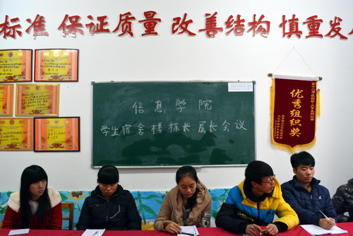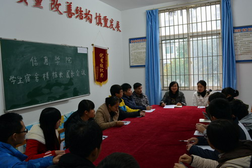 为了推动校园文明建设,给学生创造一个整洁、优美、舒适的生活环境,强化学生团结友爱、互相协作的集体主义精神,12月9日中午,信息学院在31栋121召开了学生宿舍楼栋长、层长会议。学生科副科长胥杜鹃老师,各宿舍楼栋栋长、层长及宿管部成员参加了本次会议。